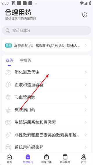 1、打开用药助手的合理用药页面,选择药品分类,进入对应分类页面。