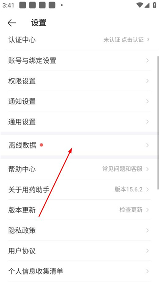 3、在设置页面点击离线数据选项,进入离线数据管理页面。