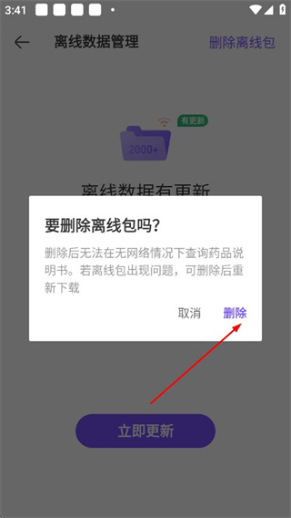 5、在提示框中点击删除按钮,即可完成离线包的删除操作。