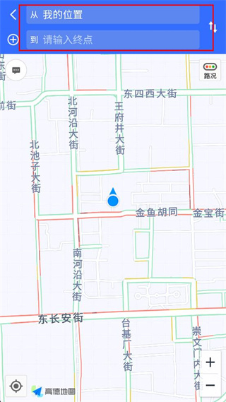 1、打开导航软件,找到界面上方的搜索目的地输入框,点击该输入框。