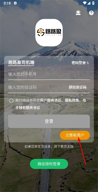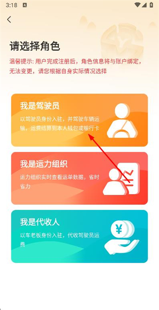 1、在登录页面点击注册新用户选项,进入选择角色页面。