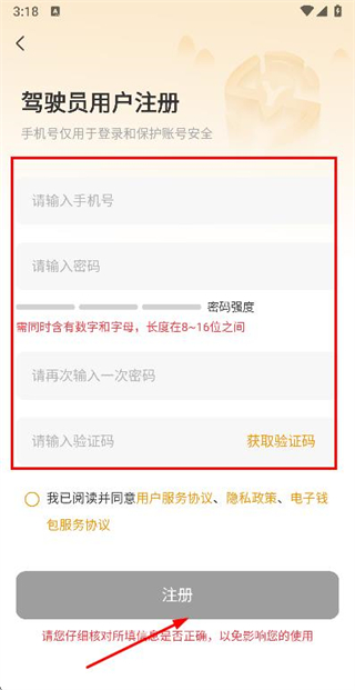 3、在注册账号页面填写信息,勾选协议后点击注册完成注册操作。