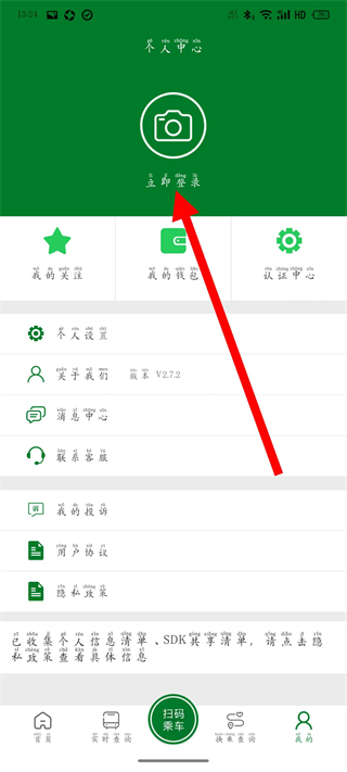 2、在个人页面点击立即登录,进入登录页面。