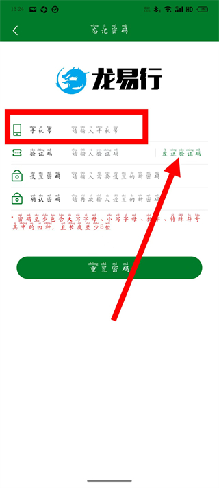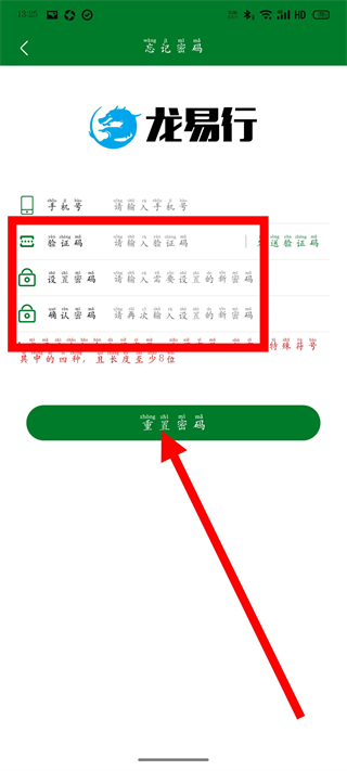 龙易行app怎么重置密码
