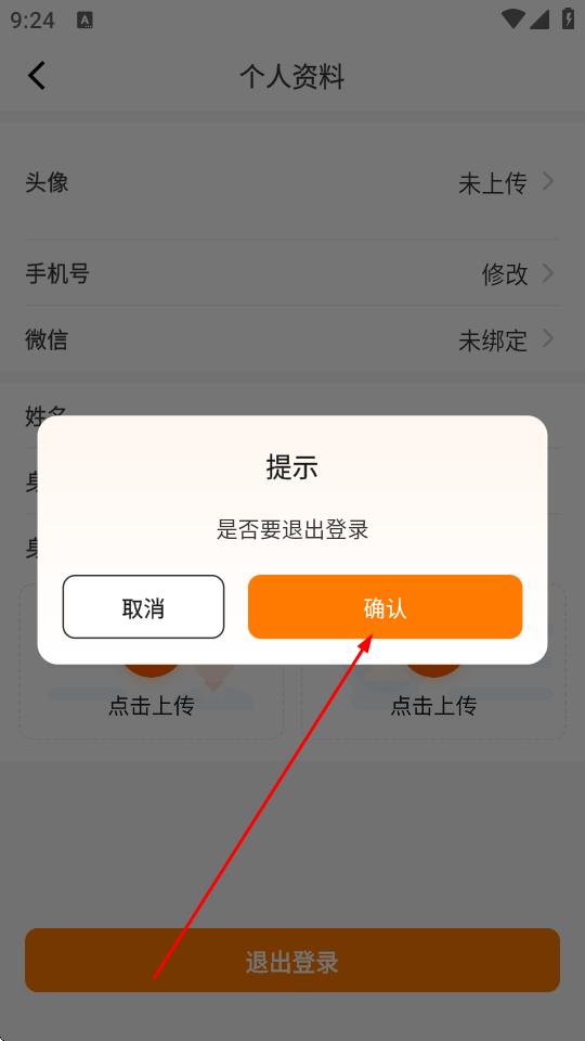 4、在弹出的是否要退出登录提示框中,点击确认,完成退出登录操作。