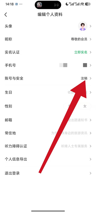 3、在编辑个人资料页面,点击账号与安全,进入账户注销相关页面。