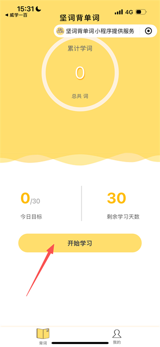 2、在雅思学习功能页面,点击背单词选项,进入背单词学习页面。