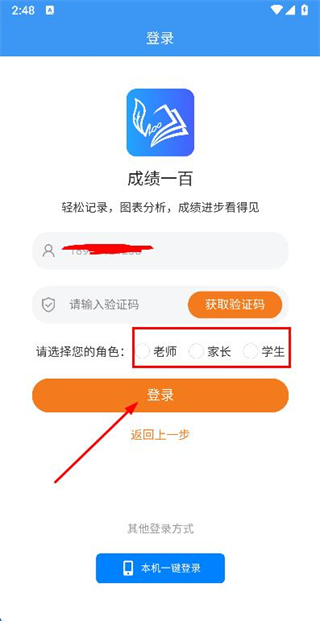 3、在手机登录页面选择自己的角色后,点击登录完成登录操作。
