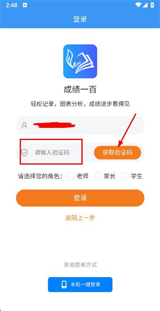 2、在手机登录页面点击获取验证码后,填写验证码。