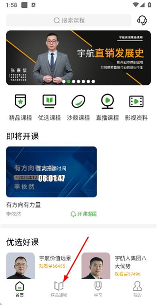 1、在首页点击底部的精品课程选项,进入精品课程列表页面。