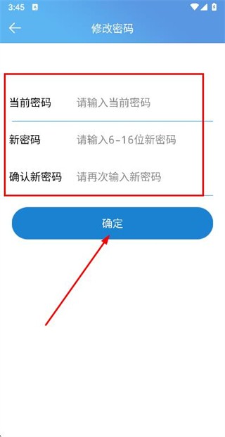 3、在修改密码页面填写当前密码、新密码等信息后,点击确定按钮完成密码修改。