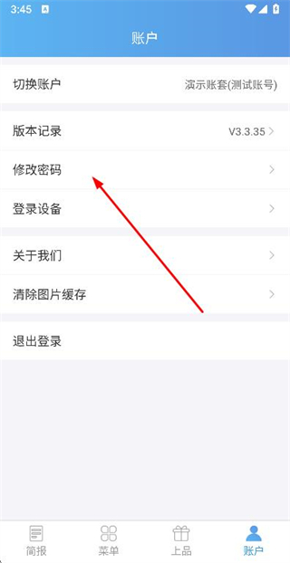 2、在账户页面点击修改密码选项,进入修改密码页面。
