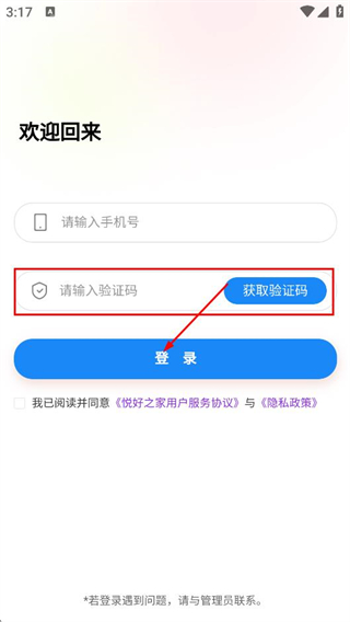 3、点击获取验证码,填入验证码,点击登录,完成悦好之家的账号登录。
