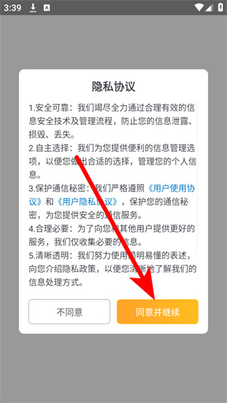 1、打开比价狗,在弹窗中点击同意并继续,进入应用首页。