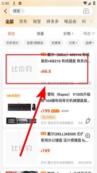 3、点击搜索框右侧的搜索,进入商品比价结果页面。