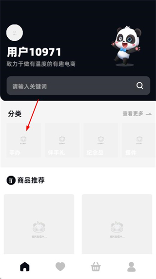 1、在新熊猫大亨首页,点击分类下的手办选项,进入手办分类商品列表页面。