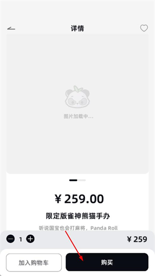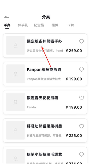 2、在手办分类商品列表页面,点击限定版雀神熊猫手办,进入该商品详情页面。