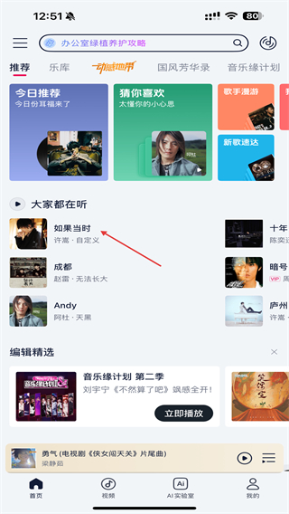 1、在咪咕音乐首页,找到想要设置为彩铃的歌曲,点击该歌曲进入播放页面。