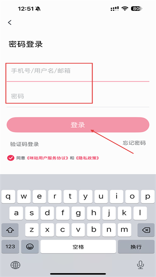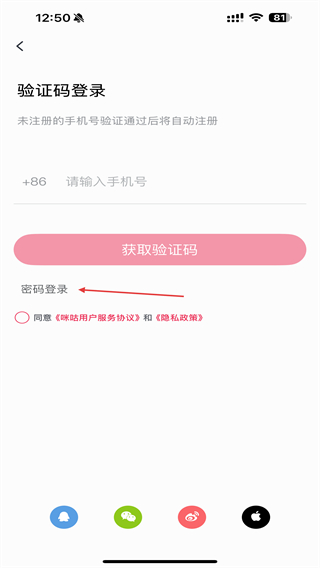 3、在密码登录的页面内,输入手机号、密码后点击登录即可。