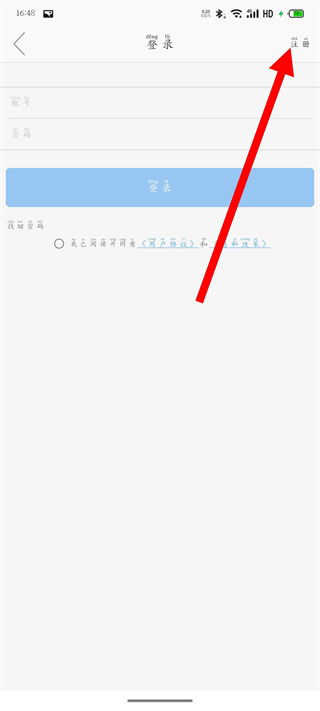 3、在登录页面,点击注册,跳转至注册页面。
