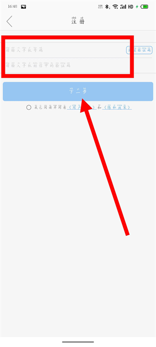 4、在注册页面,填写对应信息,勾选相关协议后,点击下一步,完成账号注册操作。