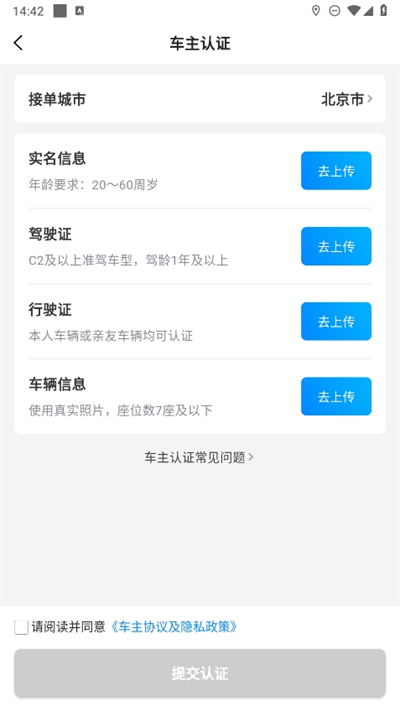 2、接着进入软件后可以进行车主信息的认证,点击这里就可以进行认证了;