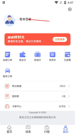 3、在我的页面中,看到暂未登录提示,点击该提示进入巴士兄弟的登录界面。