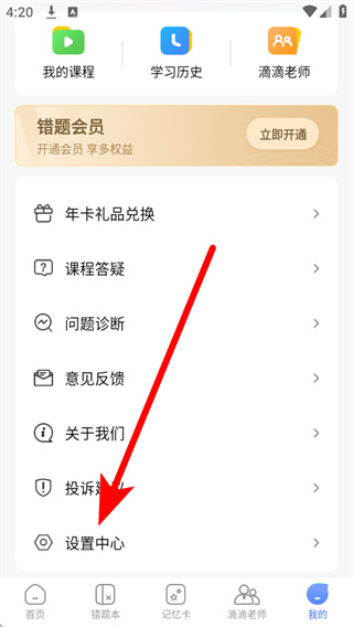 2、在个人中心页面,找到并点击设置中心,进入设置界面。