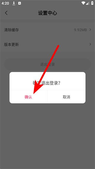 3、在设置中心页面,点击退出登录,触发退出确认弹窗。