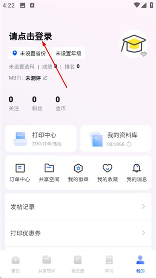 2、在个人中心页面,点击请点击登录区域,进入手机登录页面。