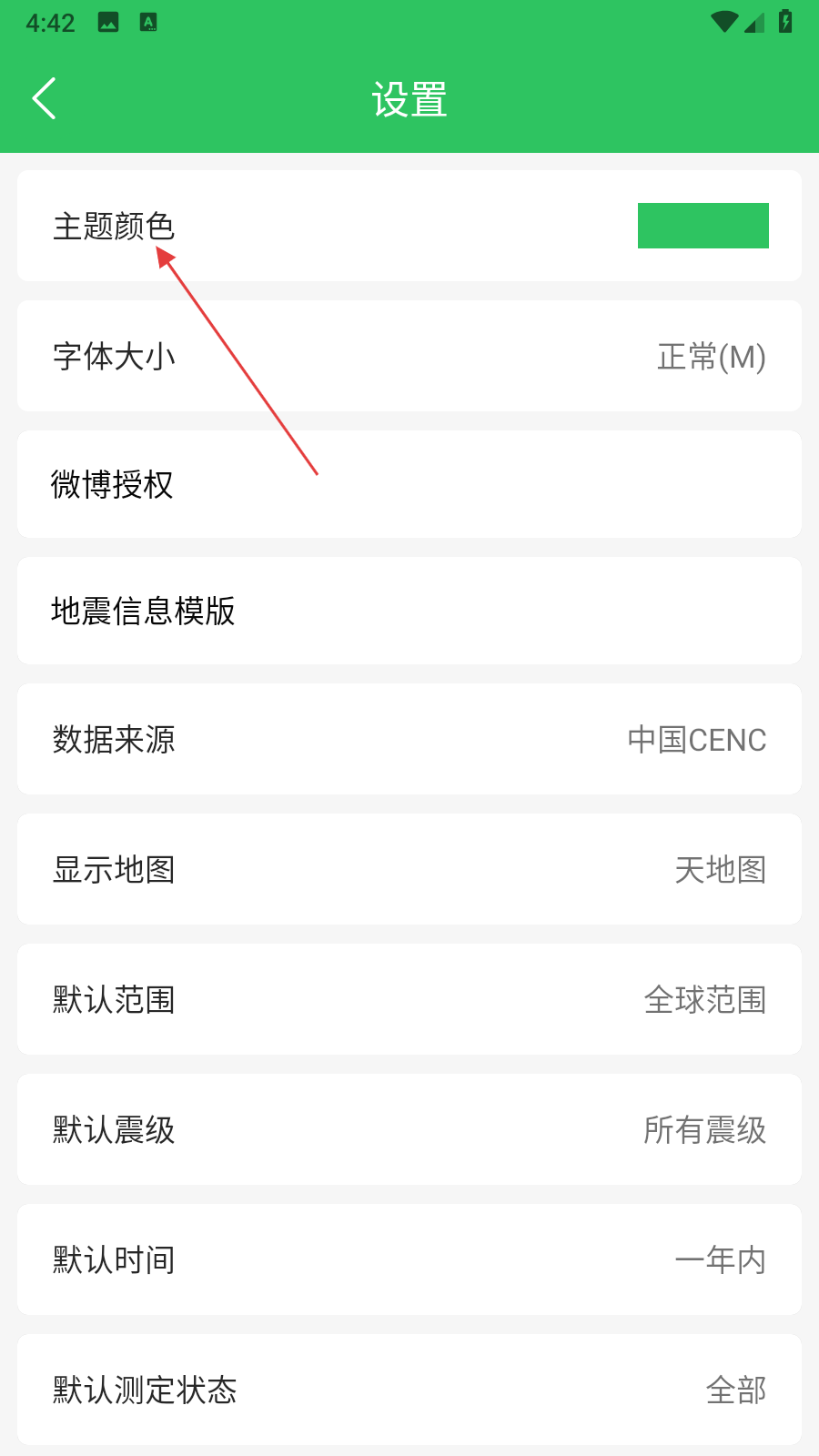 3、在设置界面中,点击主题颜色选项,弹出颜色选择框。