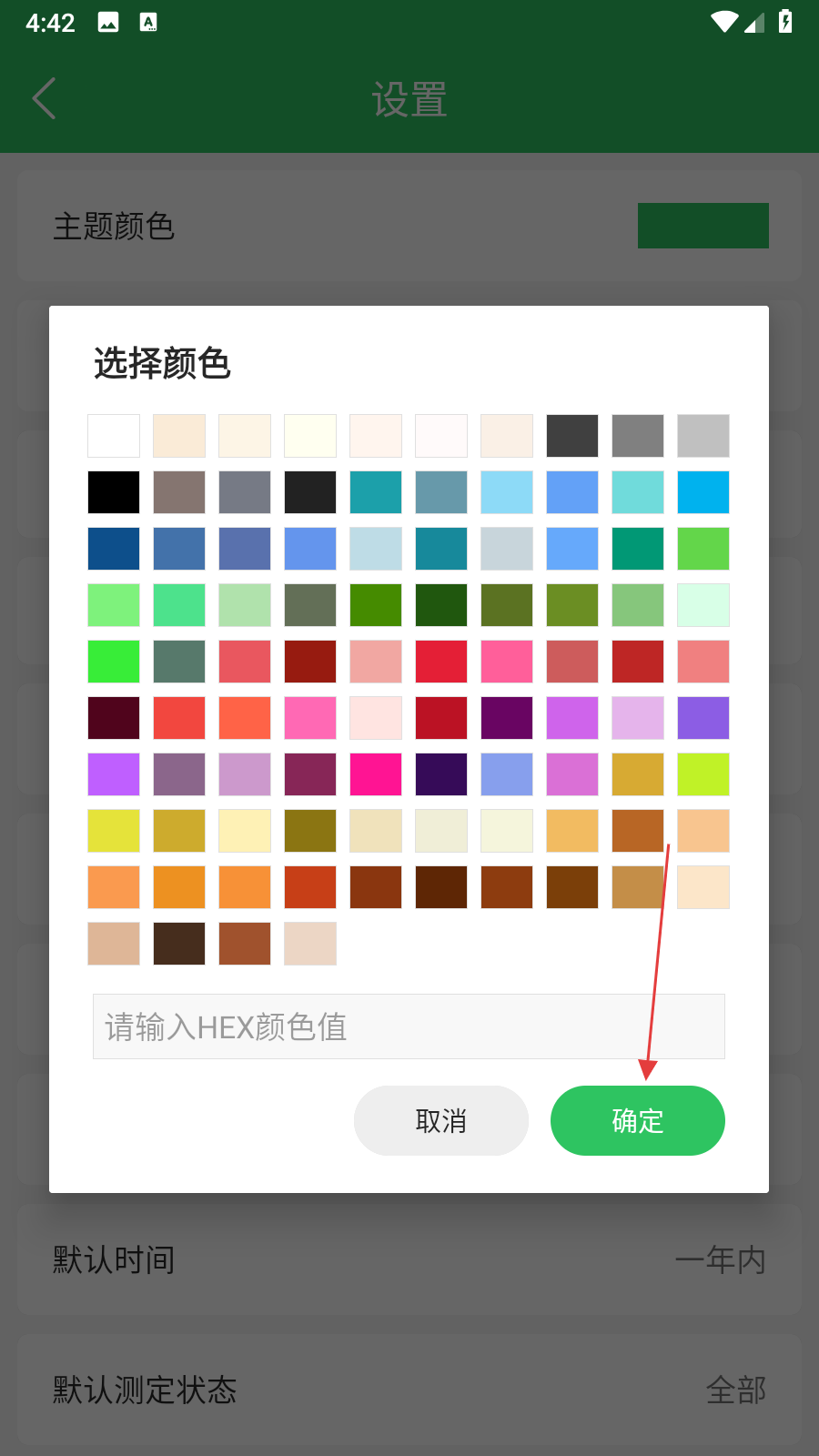 4、在颜色选择框中,选择想要的主题颜色,然后点击确定按钮。