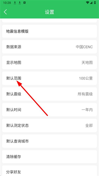 3、在设置界面,选择默认范围选项,弹出范围选择的弹窗。