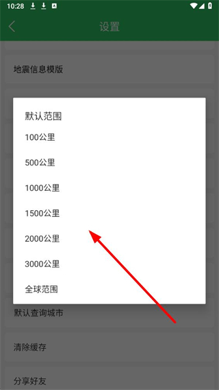 4、在弹窗中,选择想要的范围,即可完成默认范围的修改设置。