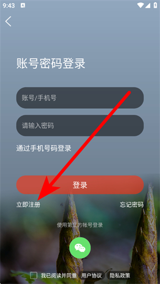 3、在账号密码登录页面,点击立即注册,进入填写信息页面。