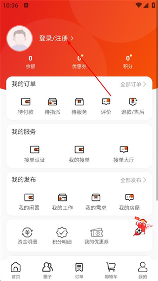 2、在我的页面,点击顶部登录/注册,进入手机快捷登录页面。