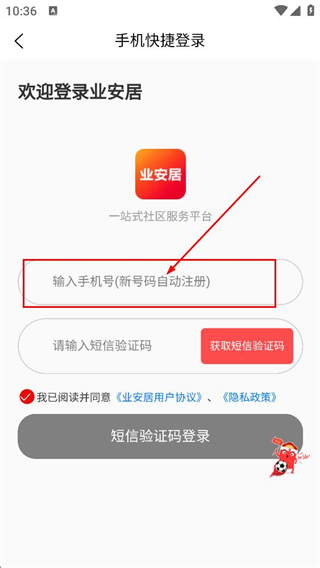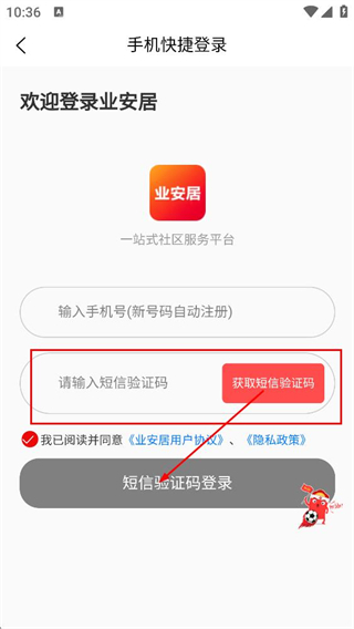 4、在手机快捷登录页面,将收到的验证码填入输入框,完成账号登录。