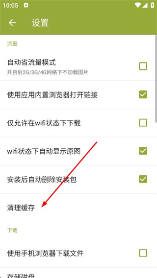 3、在设置页面,点击清理缓存,即可清理缓存数据。