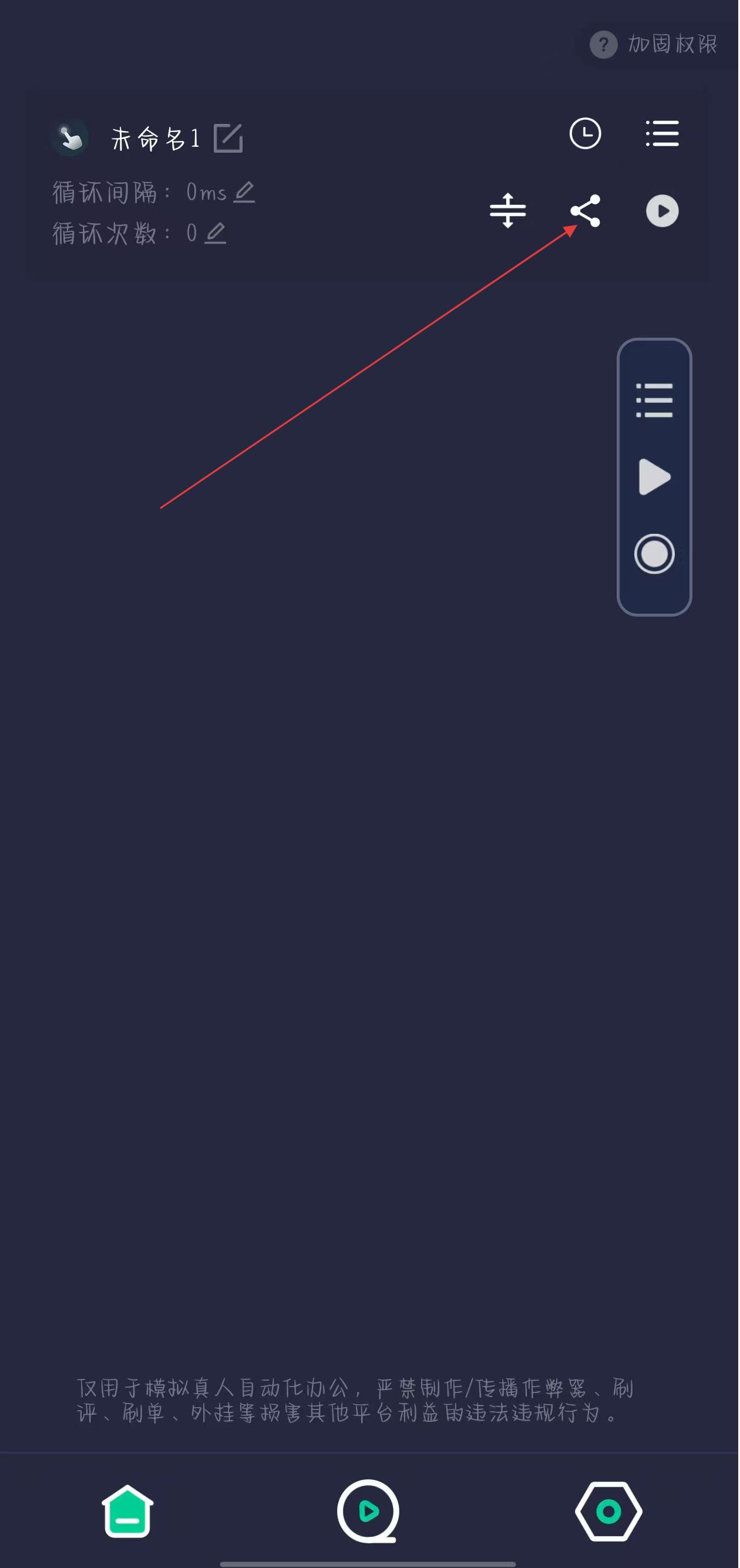 1、打开小触控应用,点击界面中脚本右下角的分享图标,进入分享脚本页面。