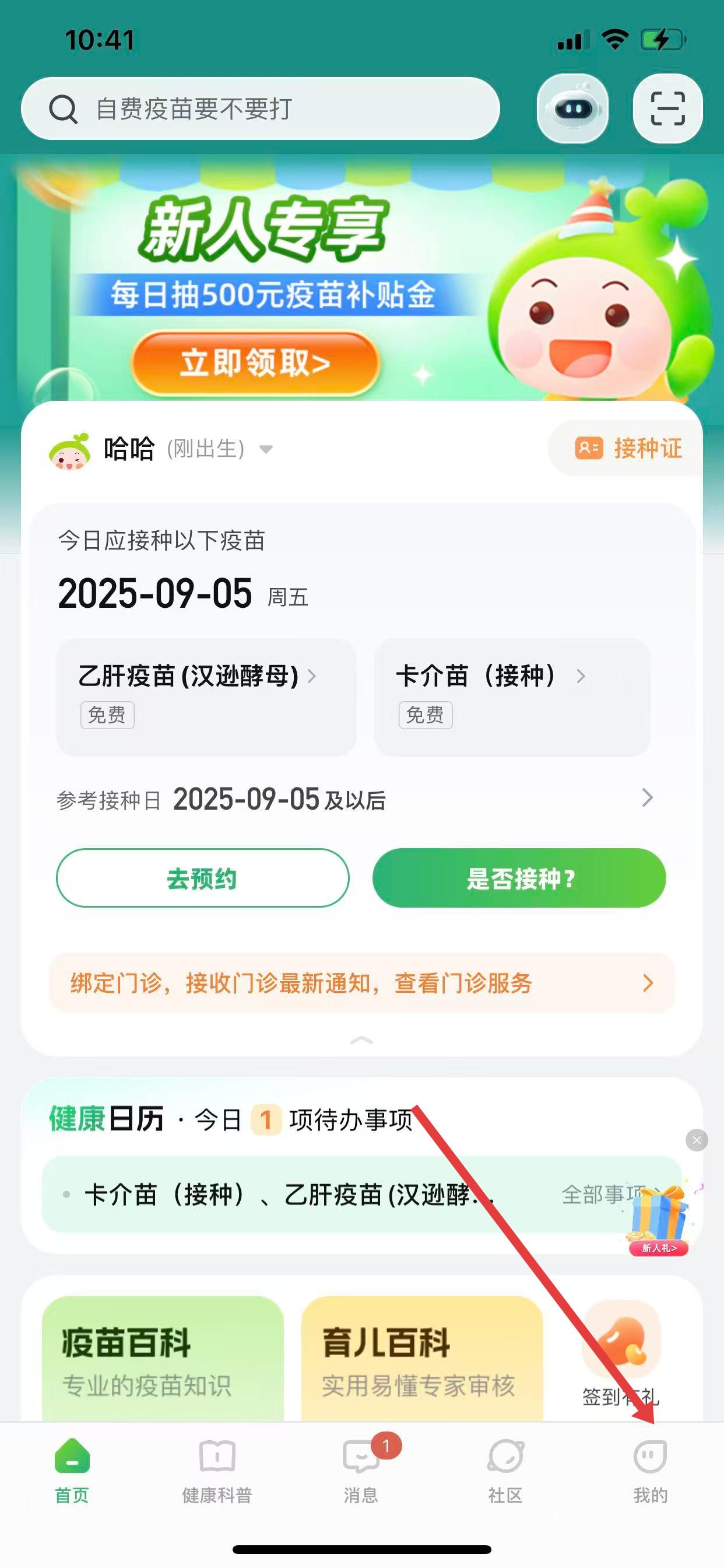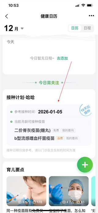 3、操作完成后,该疫苗接种计划会同步到健康日历中,可在健康日历页面查看。