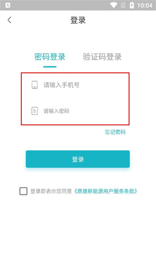 3、在登录页面选择密码登录方式,依次点击对应输入框填写手机号和密码。