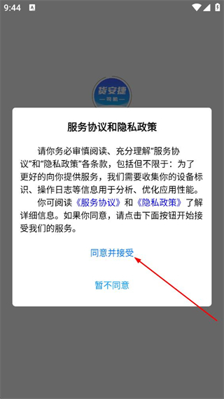 1、在服务协议和隐私政策弹窗中,点击同意,进入登录页面。