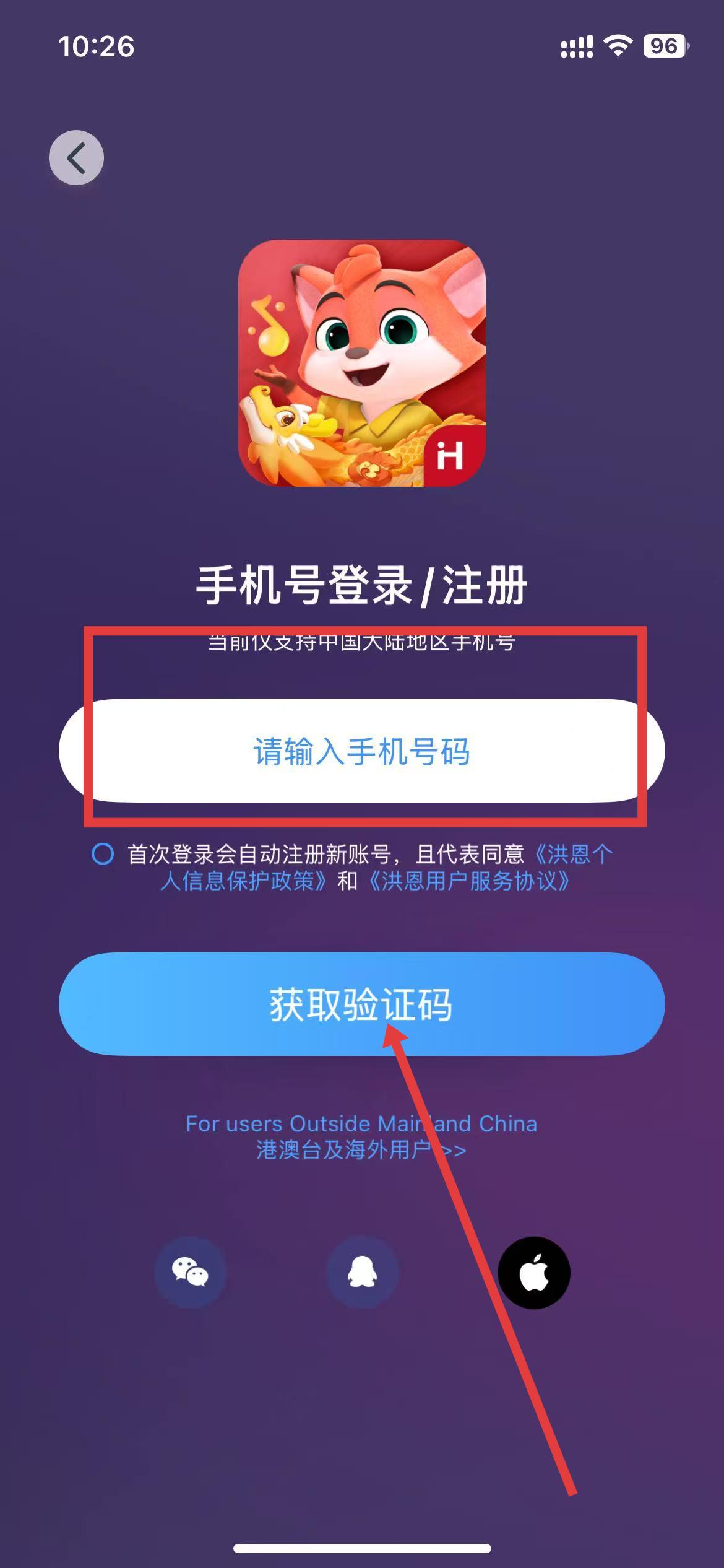 3、进入登录页面,输入手机号码,点击获取验证码。