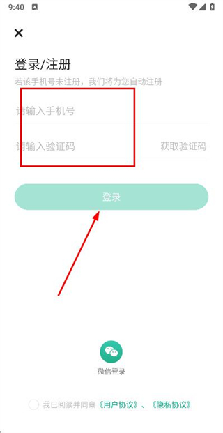 3、在登录页面填写手机号和验证码,勾选协议后,点击登录完成账号登录操作。