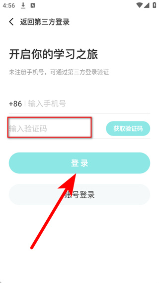 4、将收到的短信验证码填入框,点击登录完成账号登录。