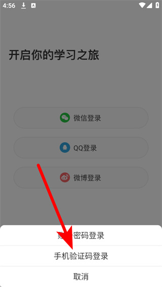 2、在弹出的选项中,选择手机验证码登录,进入手机号验证页面。