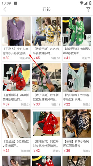 3、在开衫商品列表页,点击目标商品进入商品详情页面。