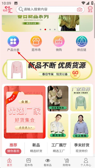 1、在毛衫汇首页,点击产品分类选项进入产品分类页面。