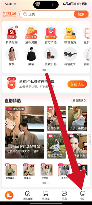 1、打开批批网,点击底部导航栏的我的,进入个人中心页面。