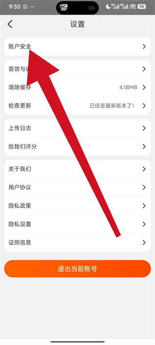 3、在设置页面中,选择账户安全,进入账户安全设置界面。